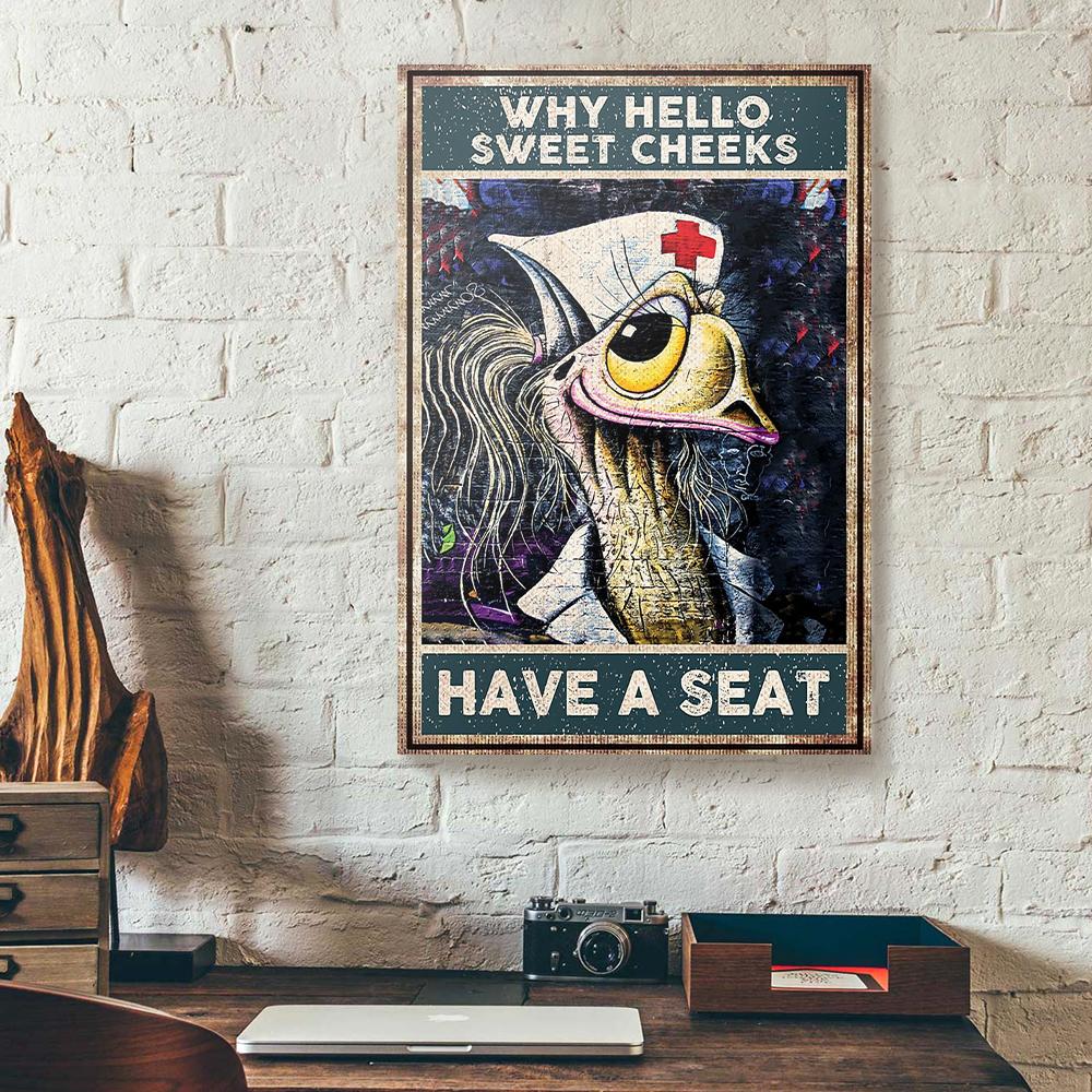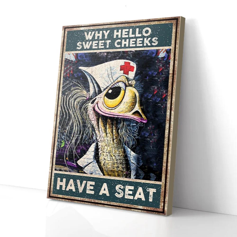 Why Hello Sweet Cheeks Have A Seat Funny Ostrich Nurse Canvas Prints – Wall Art Decor