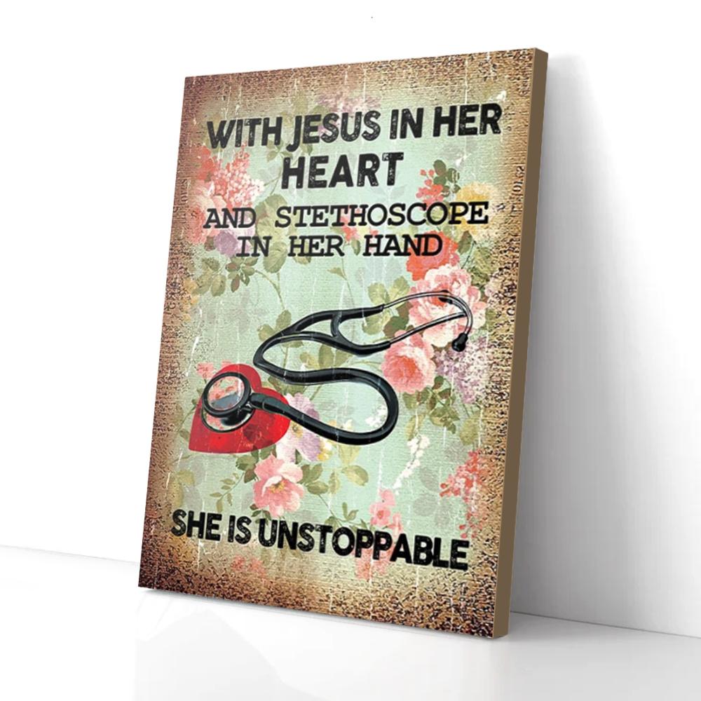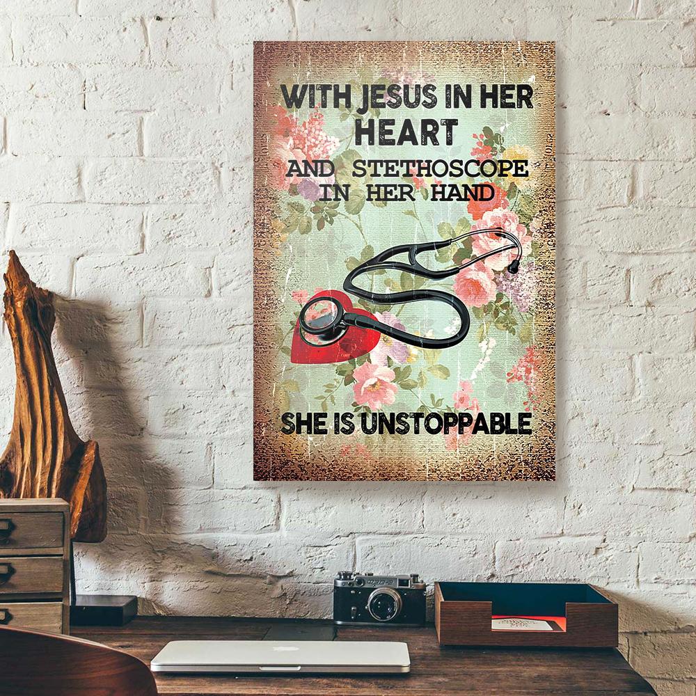 With Jesus In Her Heart & Stethoscope In Her Hand Nurse Canvas Prints – Wall Art Decor