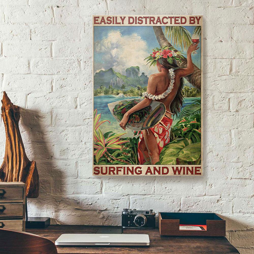 Easily Distracted By Surfing And Wine Hawaii Girl Canvas Prints – Wall Art Decor
