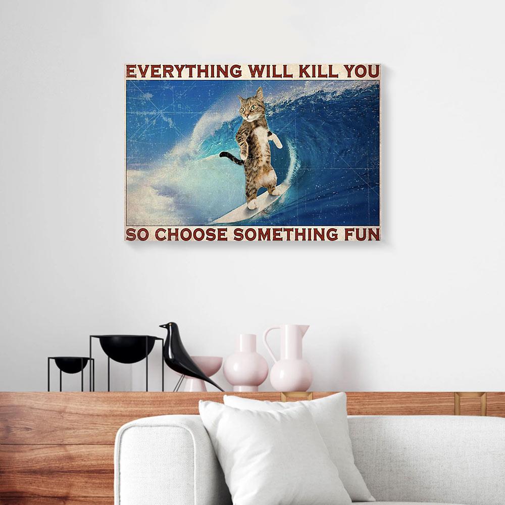 Everything Kill You Choose Something Fun Cat Surfing Canvas Prints – Wall Art Decor