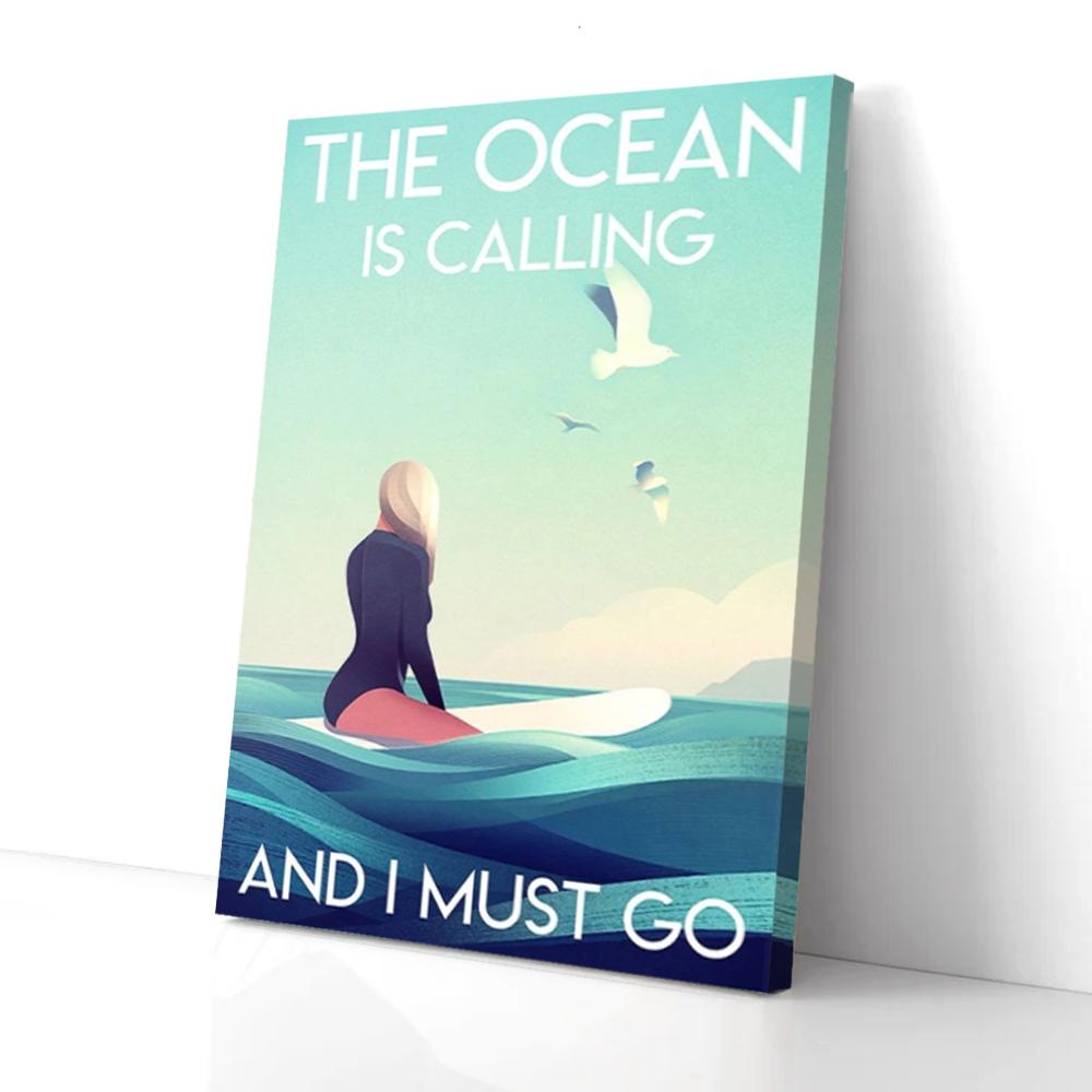 The Ocean Is Calling And I Must Go Girl Surfing Canvas Prints – Wall Art Decor
