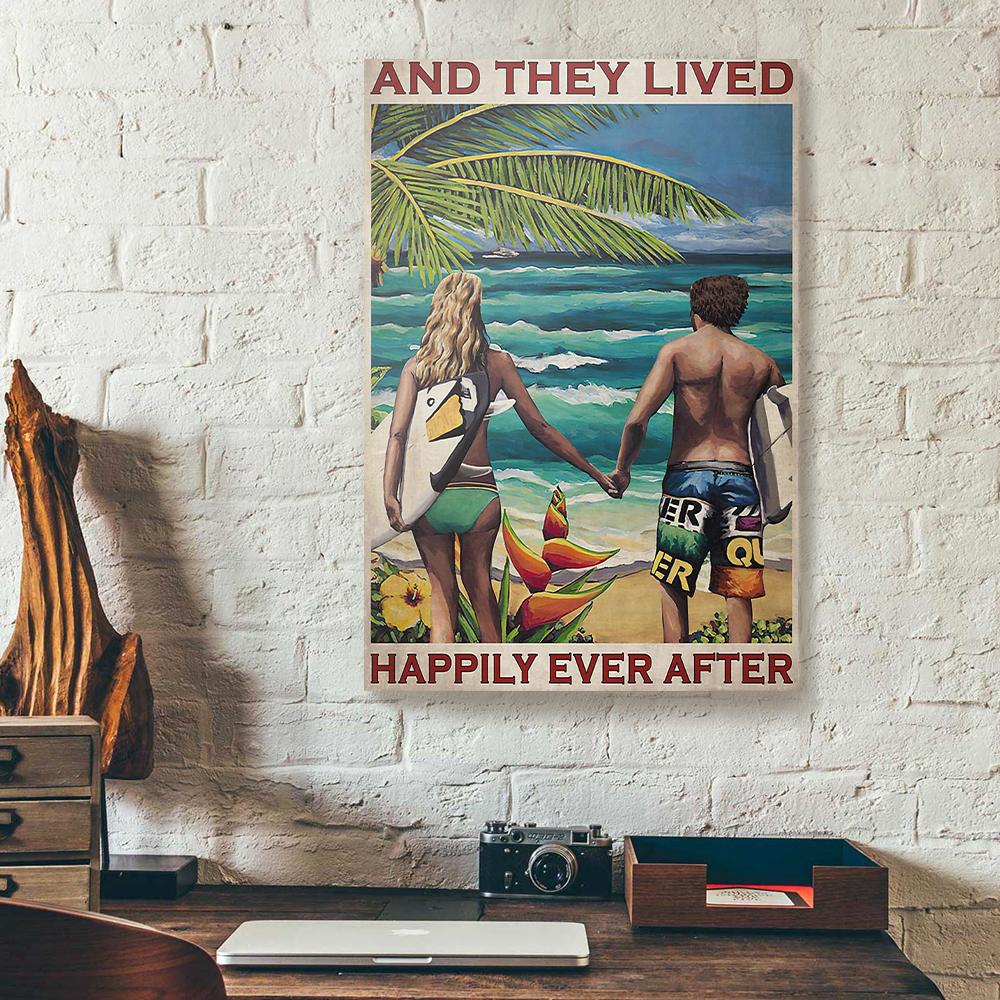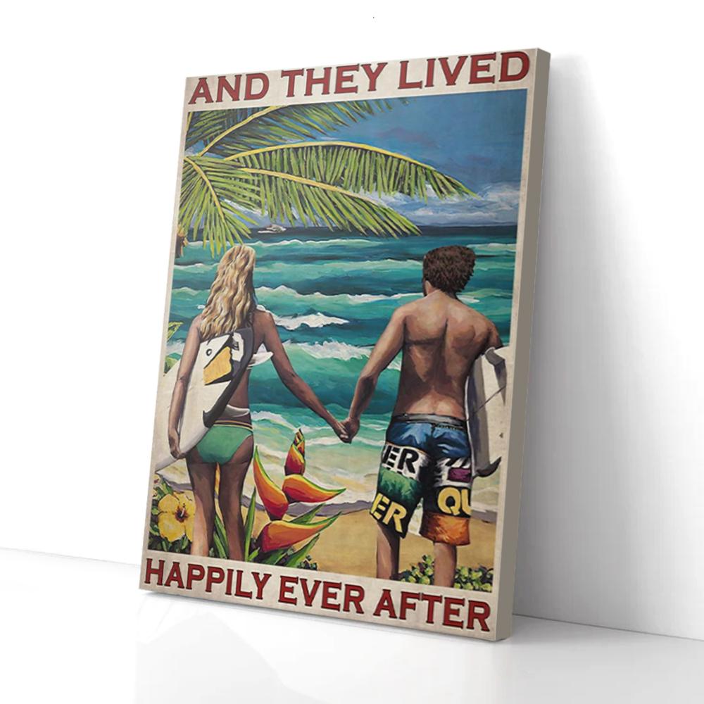 And They Lived Happily Ever After Surfing Couple Canvas Prints – Wall Art Decor