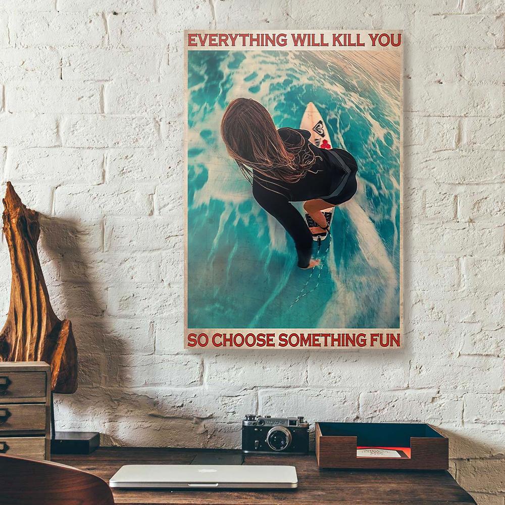 Everything Will Kill You Choose Something Fun Woman Surfing Canvas Prints – Wall Art Decor