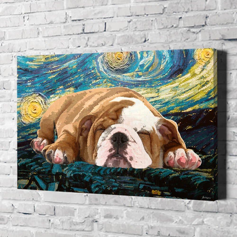 Bulldog Starry Night Canvas Prints – Wall Art Decor