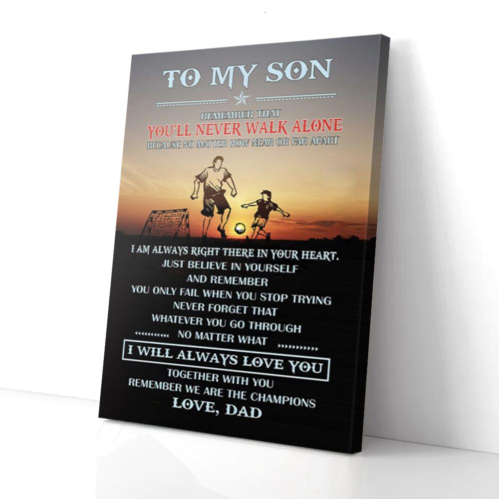 Personalized Gift For Son From Dad Football Canvas Wall Art Never Forget