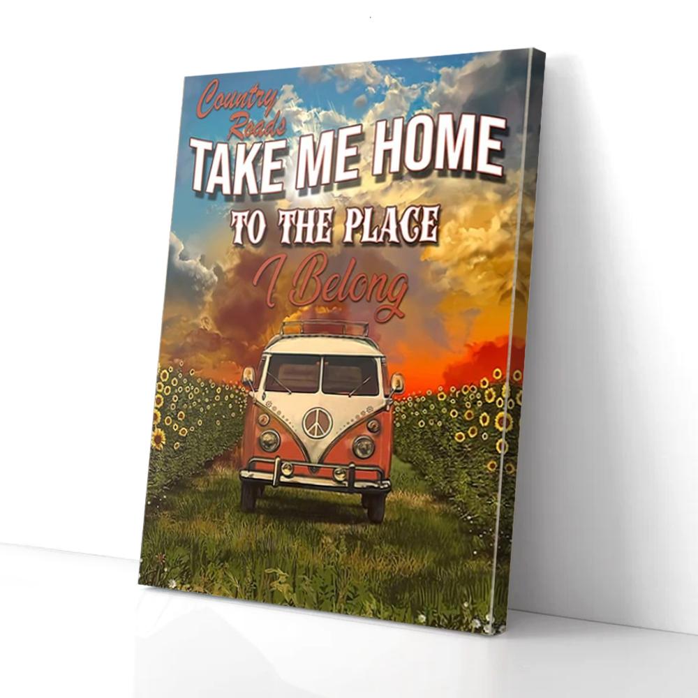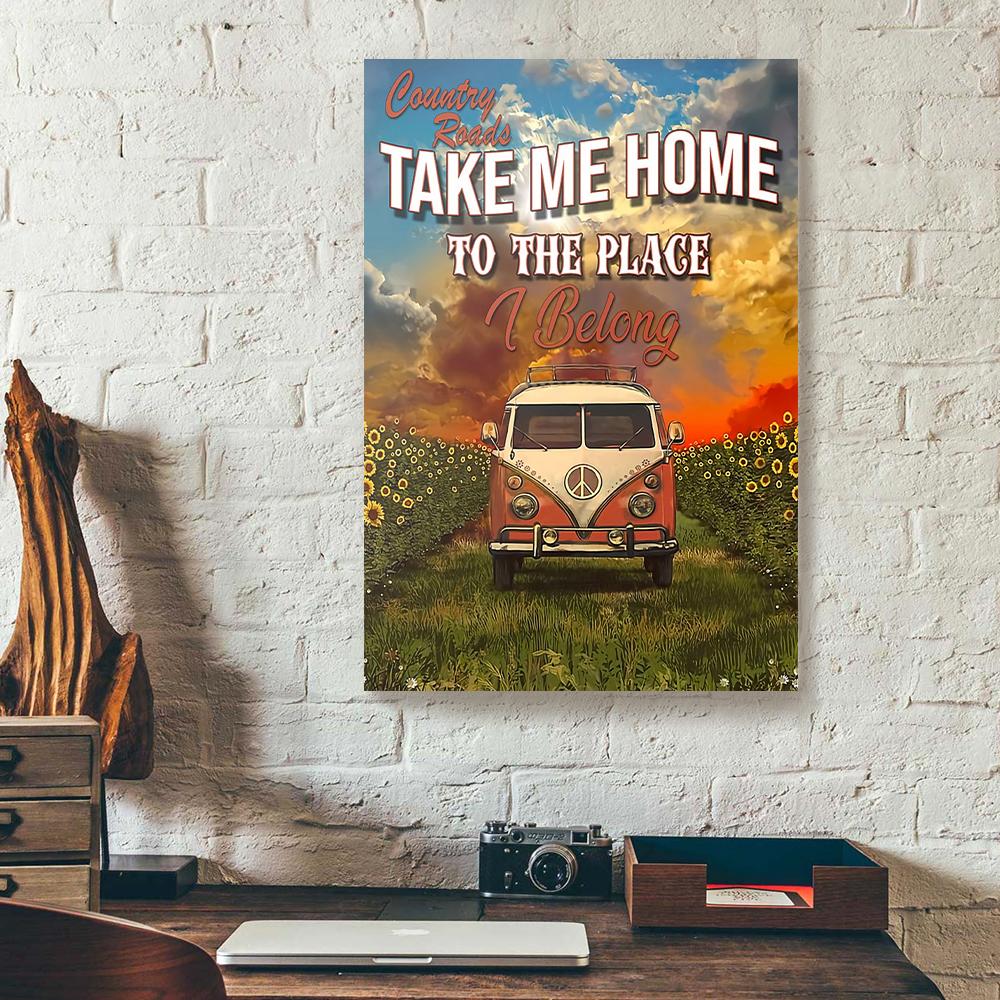 Country Roads Take Me Home Sunflowers Car Hippie Canvas Prints – Wall Art Decor