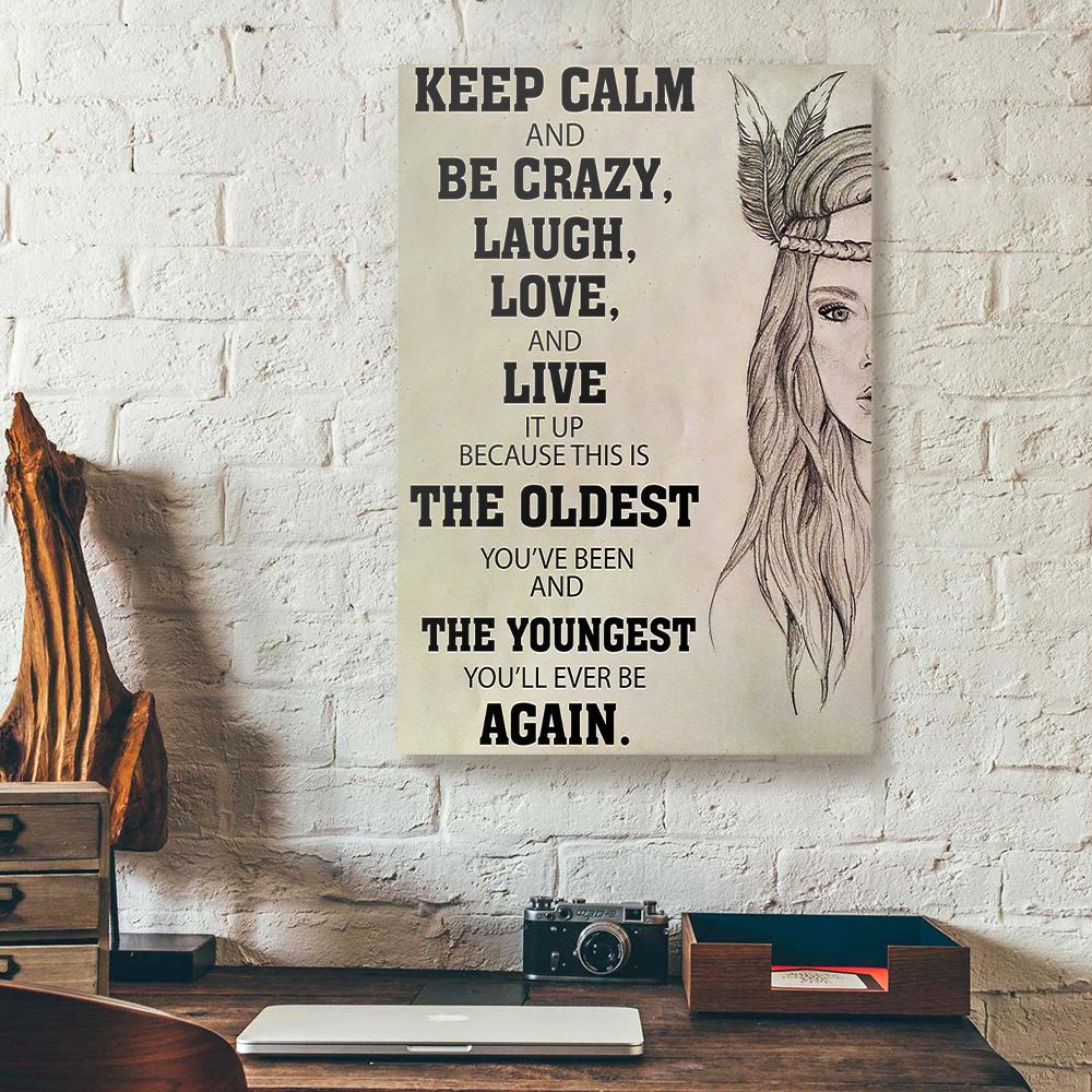 Keep Calm And Be Crazy Laugh Love Live Hippie Girl Canvas Prints – Wall Art Decor