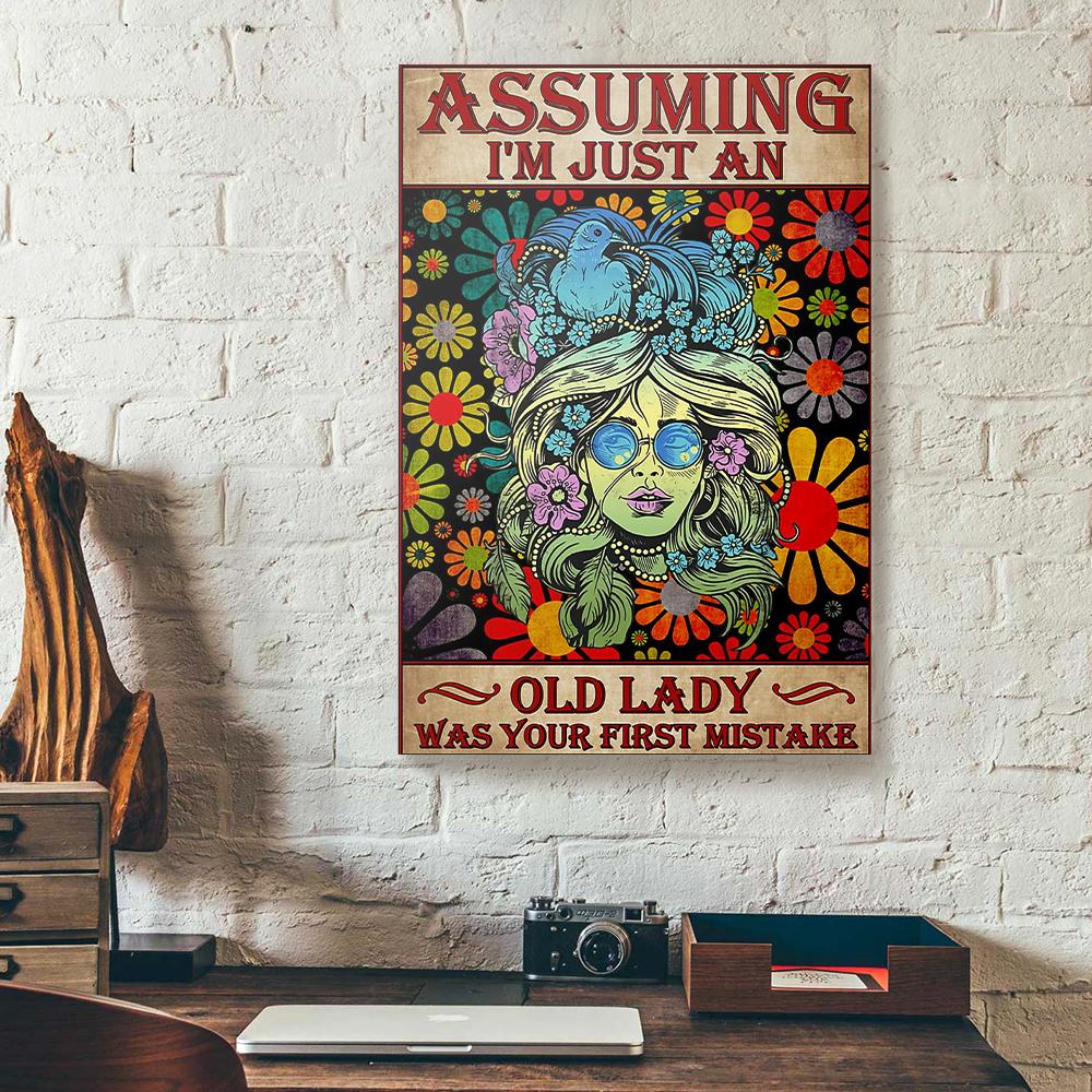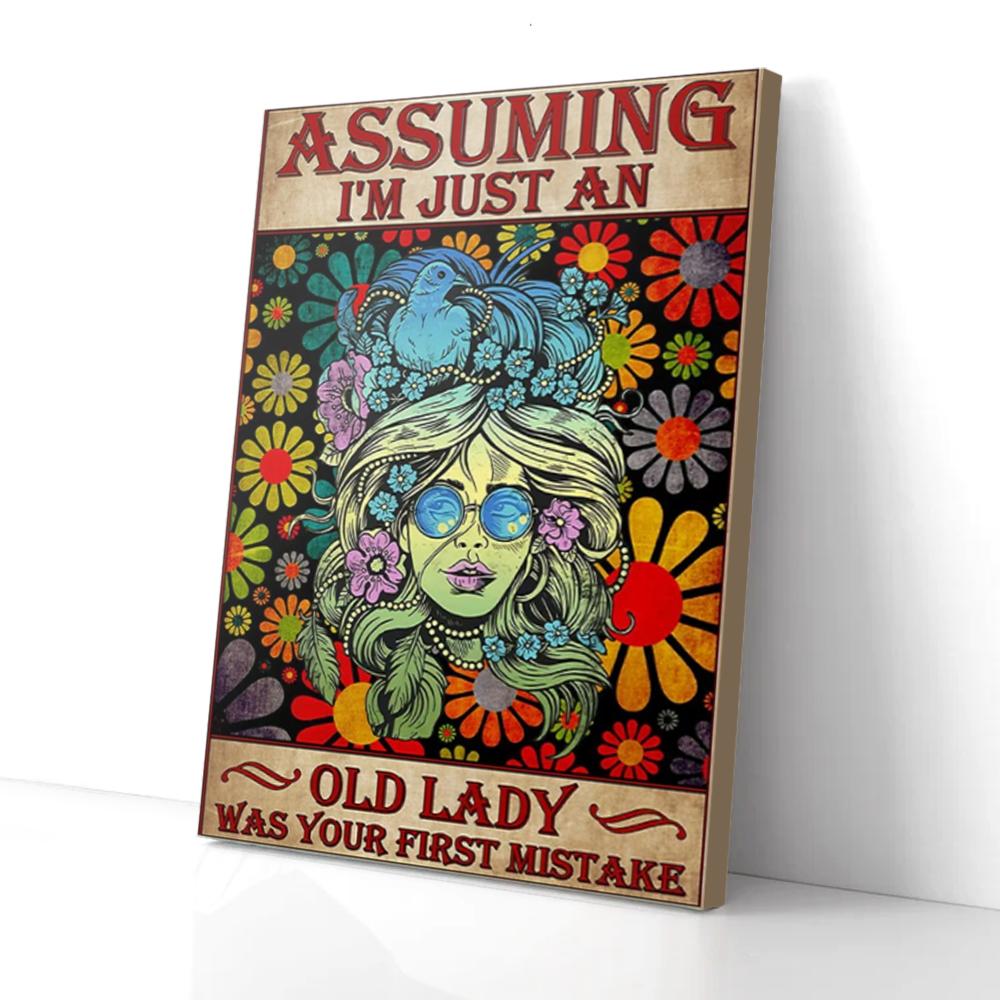 Old Lady Hippie Girl With Full Flower Canvas Prints – Wall Art Decor