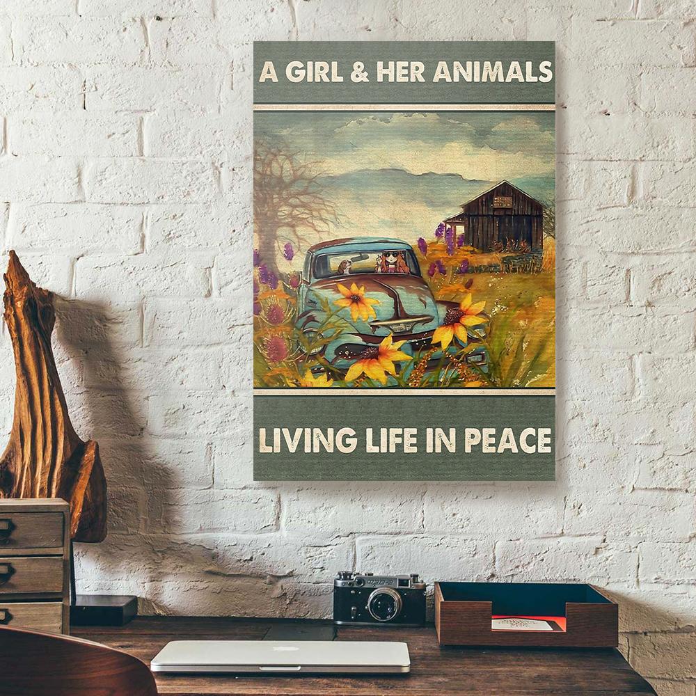 A Girl And Her Animals Living Life In Peace Dog Hippie Girl Canvas Prints – Wall Art Decor