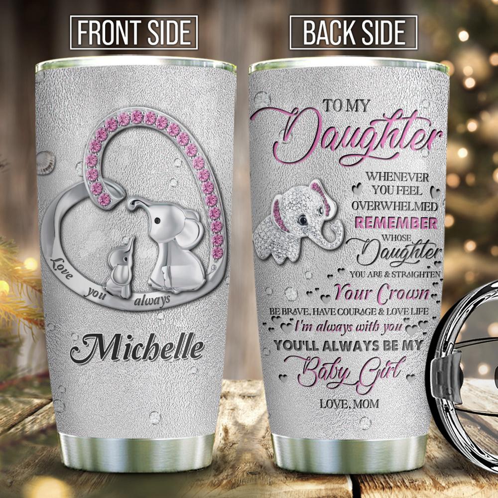 Personalized Elephant Mom To Daughter Stainless Steel Tumbler