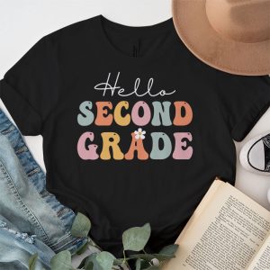 Hello 2nd Grade Back To School Special Groovy Teacher Student T-Shirt 4