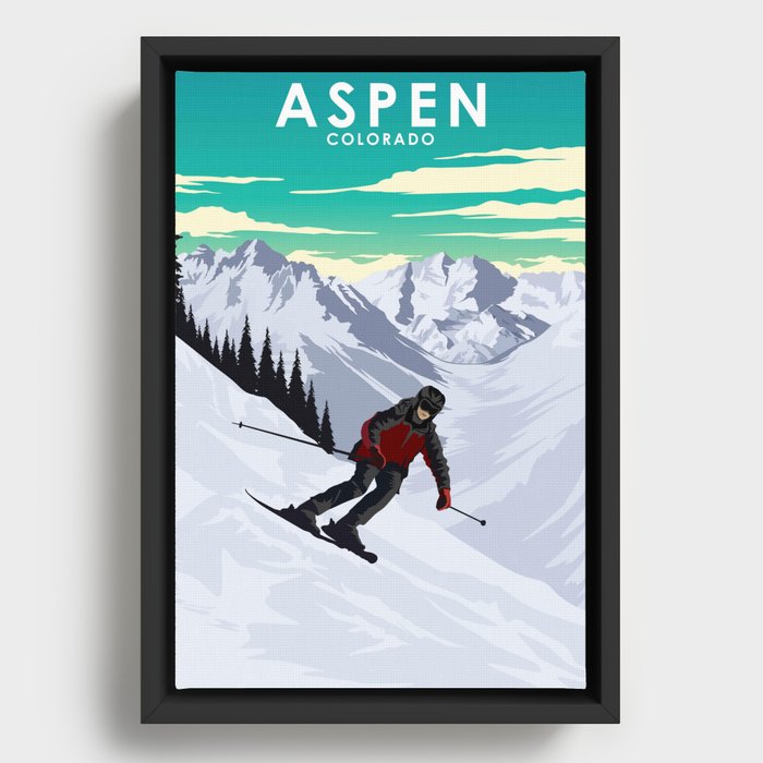 Aspen Colorado Vintage Skiing Winter Snow TraveL Poster Canvas Print – Wall Art Decor