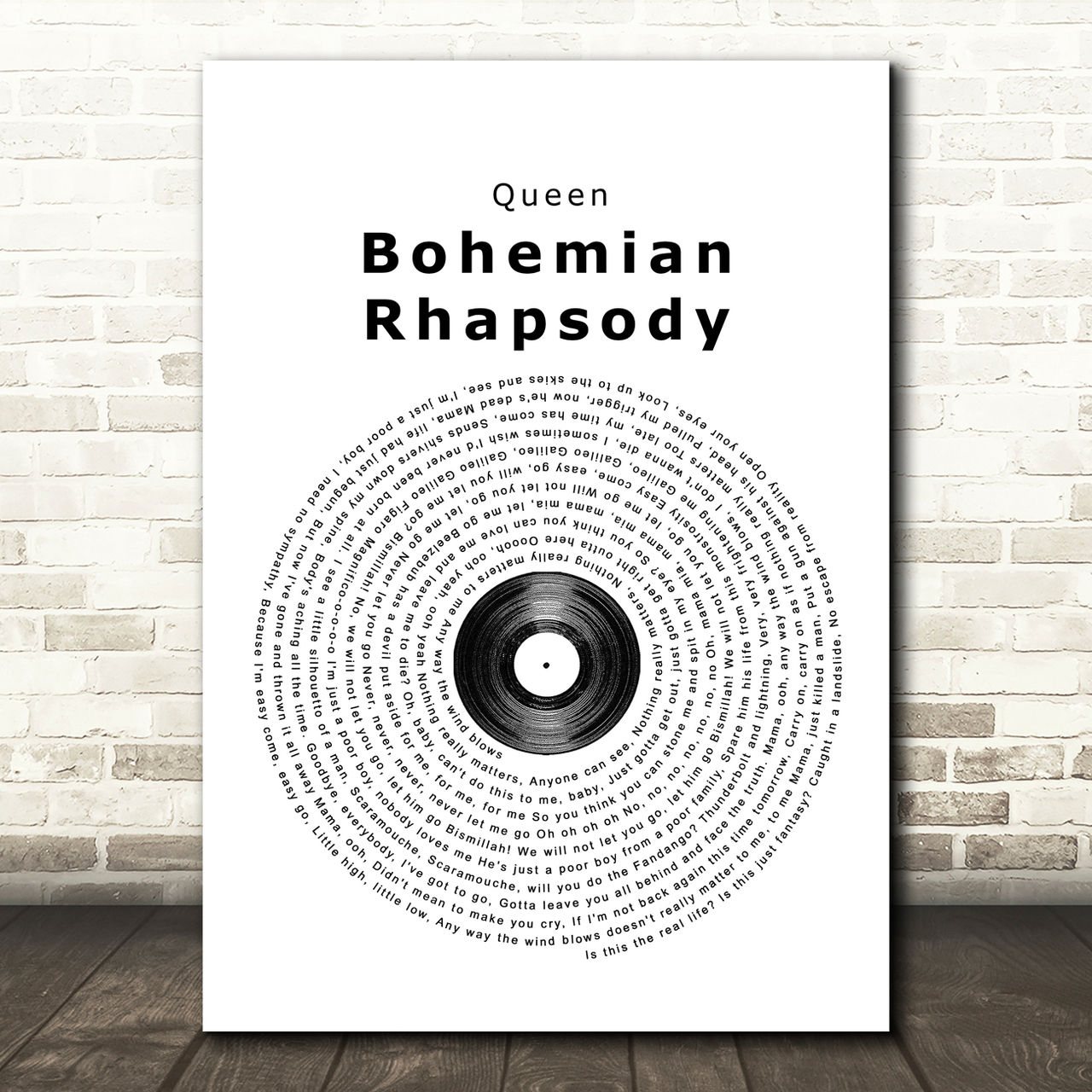 Queen Bohemian Rhapsody Vinyl Record Song Lyric Quote Print