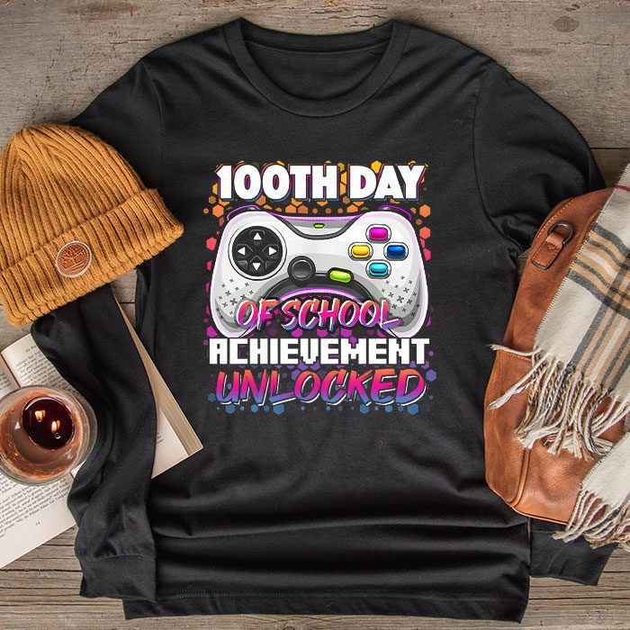 100th Day Of School Achievement Unlocked Video Game Kids Longsleeve Tee