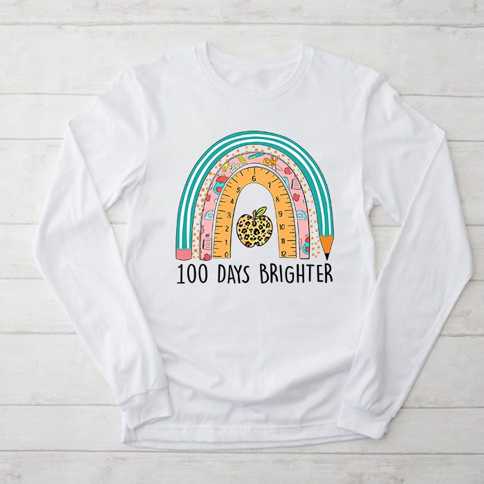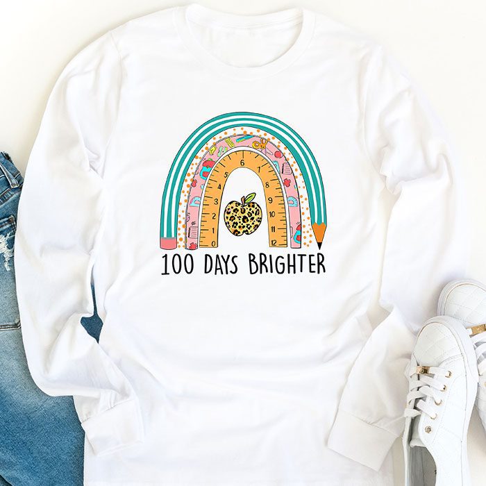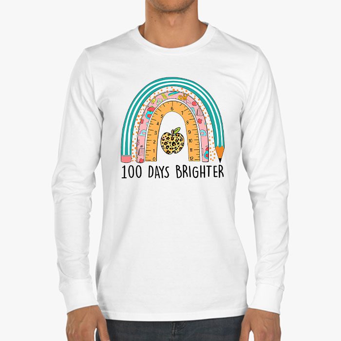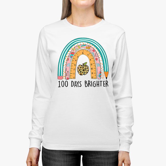 100th Day Of School Teacher 100 Days Brighter Rainbow Longsleeve Tee