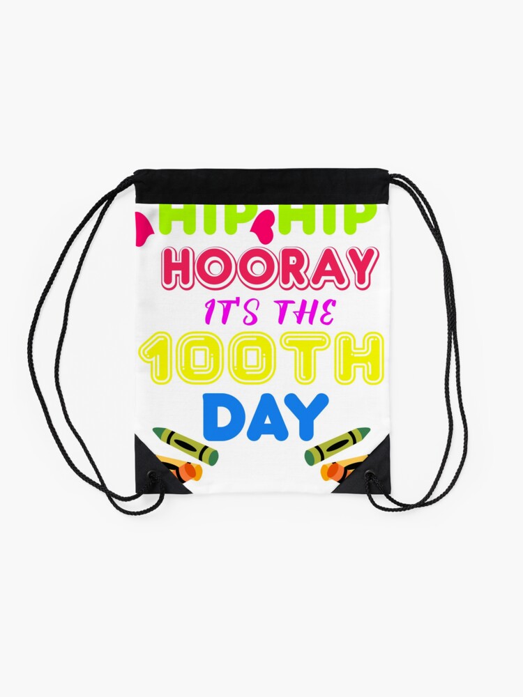 100Th Day Of School Teacher Student Funny Gift Hip Hip Hooray Its 100Th Day Drawstring Bag DSB1013
