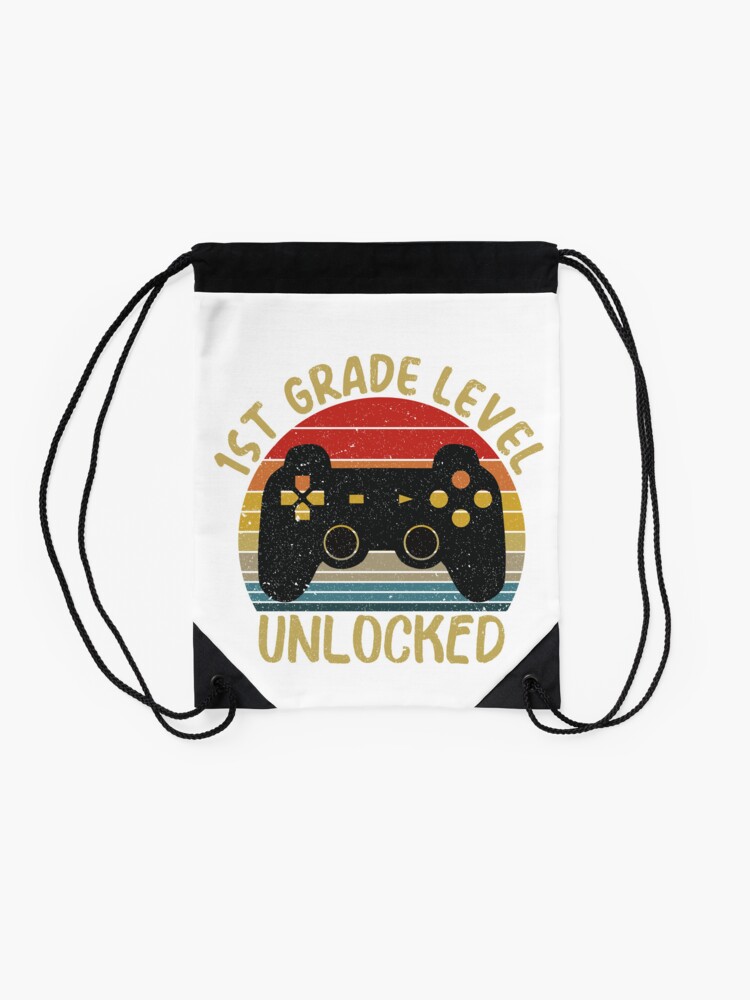 1St Grade Level Unlocked Back To School Video Game Kids First Day Of School Gifts Funny Retro Vintage Gamers Boys Girls Drawstring Bag DSB961
