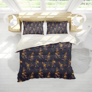 3D Black Yellow Floral Bedding Set Bedroom Decor