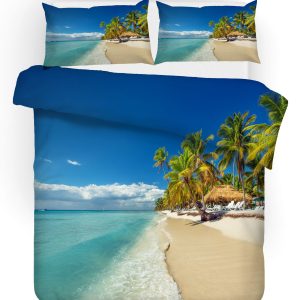 3D Blue Sea Beach Tropical Palm Tree Bedding Set Bedroom Decor