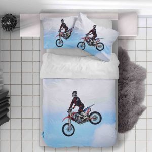 3D Dirt Bike Blue Sky Bedding Set Bedroom Decor