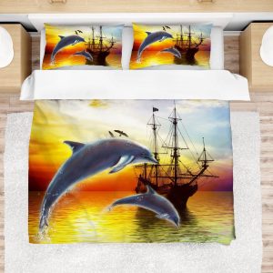3D Dolphin Jumping On Water Sunrise Bedding Set Bedroom Decor