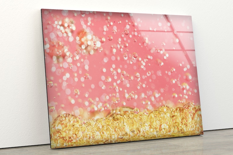 Abstract Glass Wall Art Glass Wall Decor Wall Hanging Tempered Glass Printing Wall Art Gold Pink Marble Art