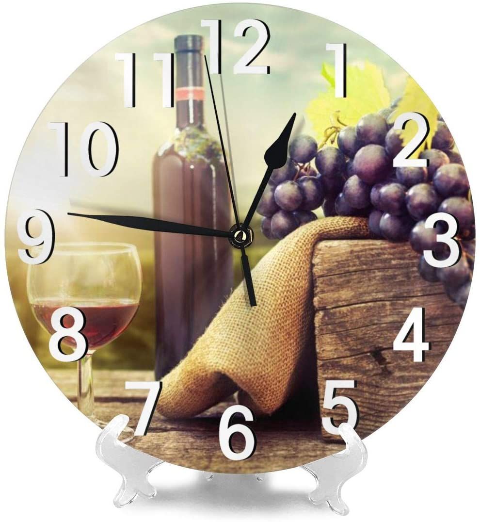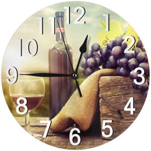 Abucaky Red Wine With Grapes And Bottle Wall Clock