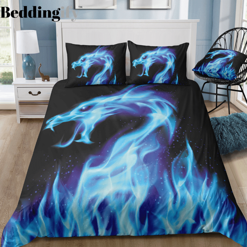 Awesome Flame Dragon Black Duvet Cover Bedding Set