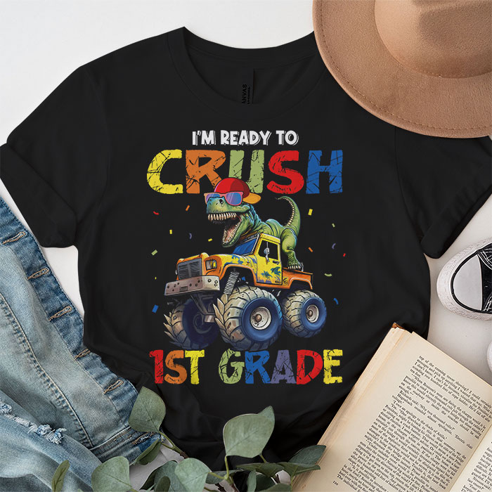 Back To School I’m Ready Crush First Grade Dinosaur Truck T-Shirt 3