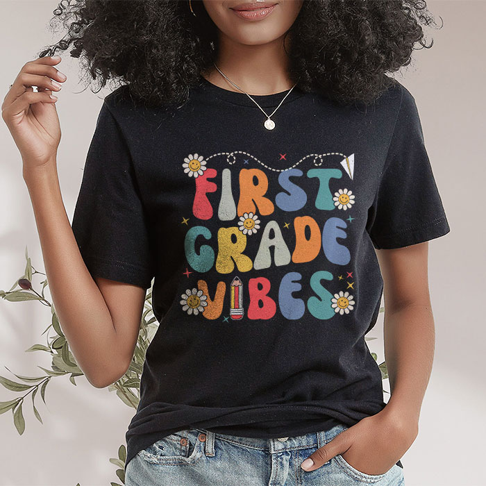 Back To School Shopping First Grade Vibes Retro Lovely T-Shirt 2