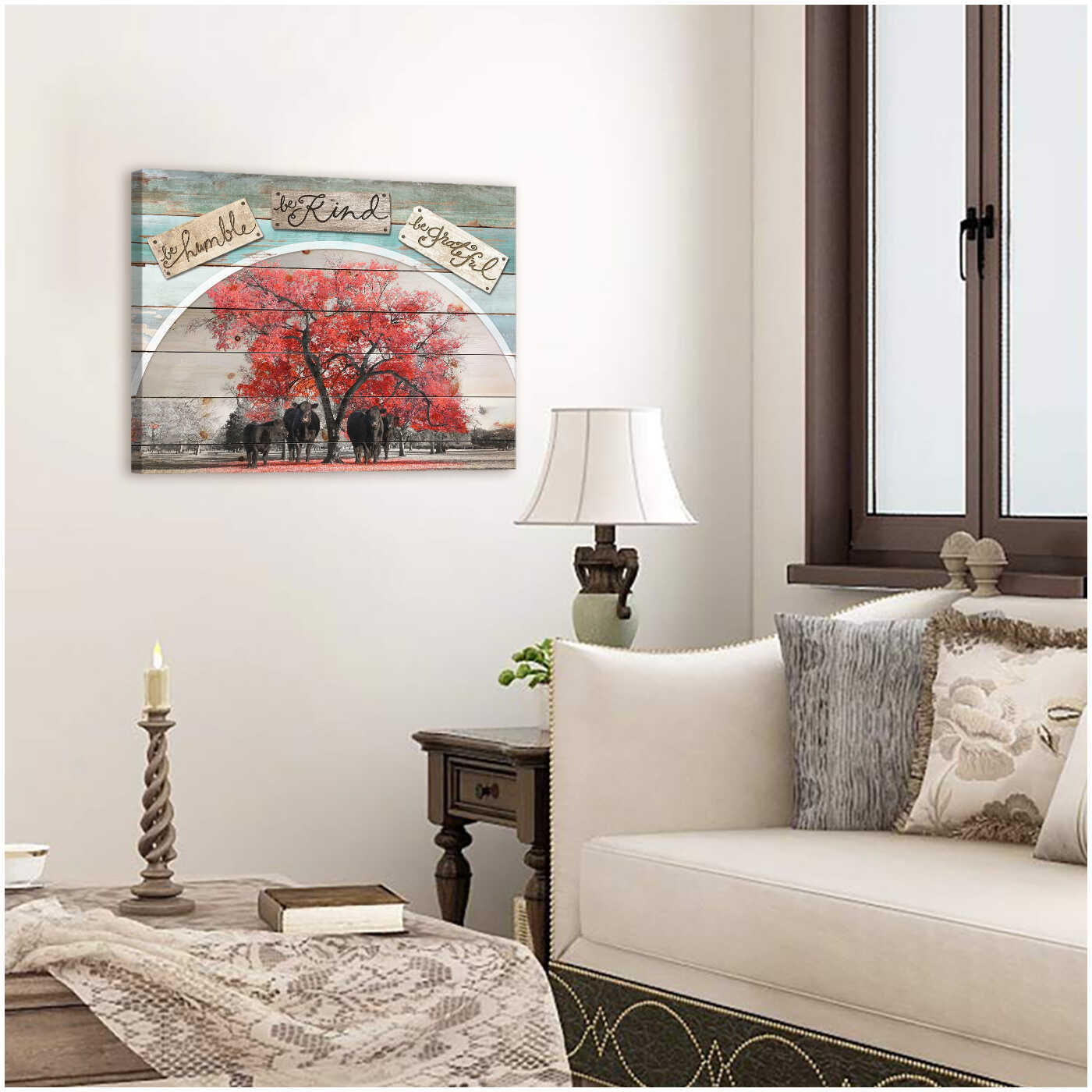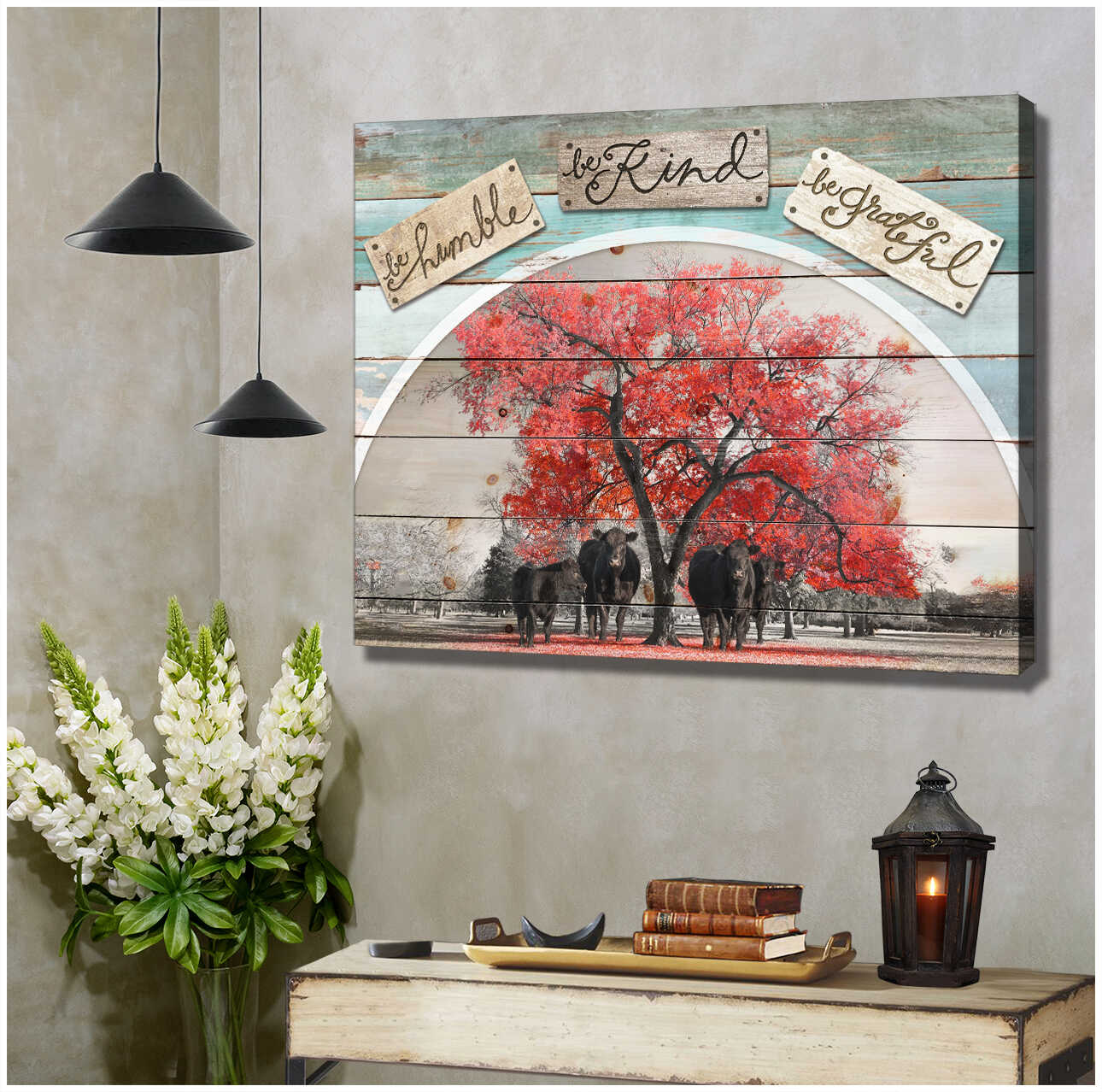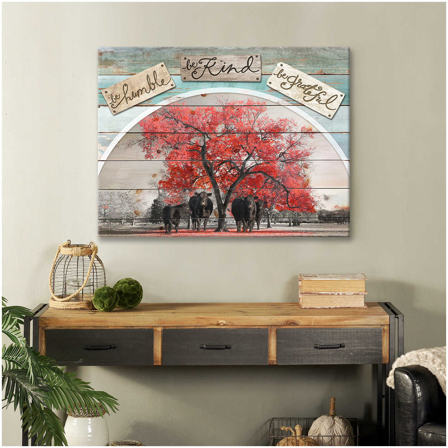 Be Humble Be Kind Be Grateful Angus Cow Farm Farmhouse Canvas Prints Wall Art Decor