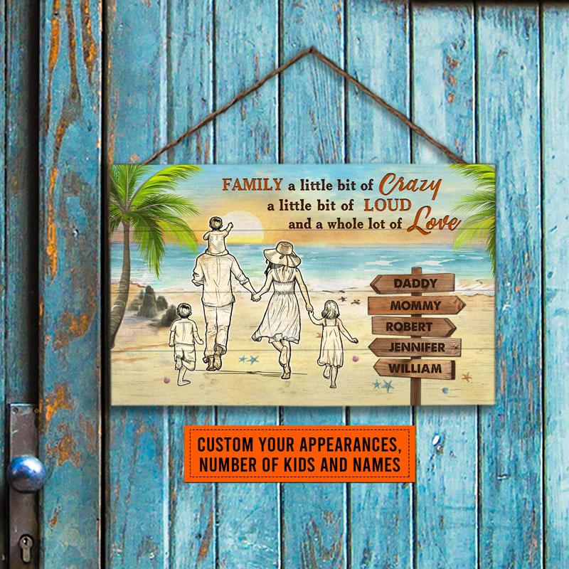 Beach Family A Little Bit Of Crazy Custom Wood Rectangle Sign, Personalized Signs, Family Gift