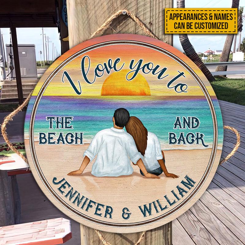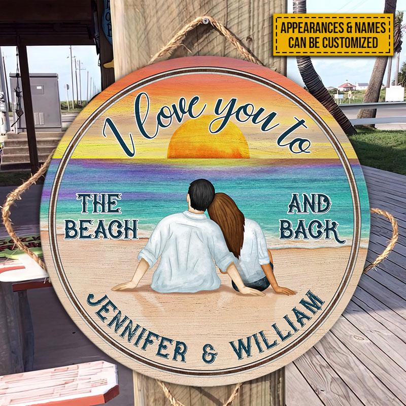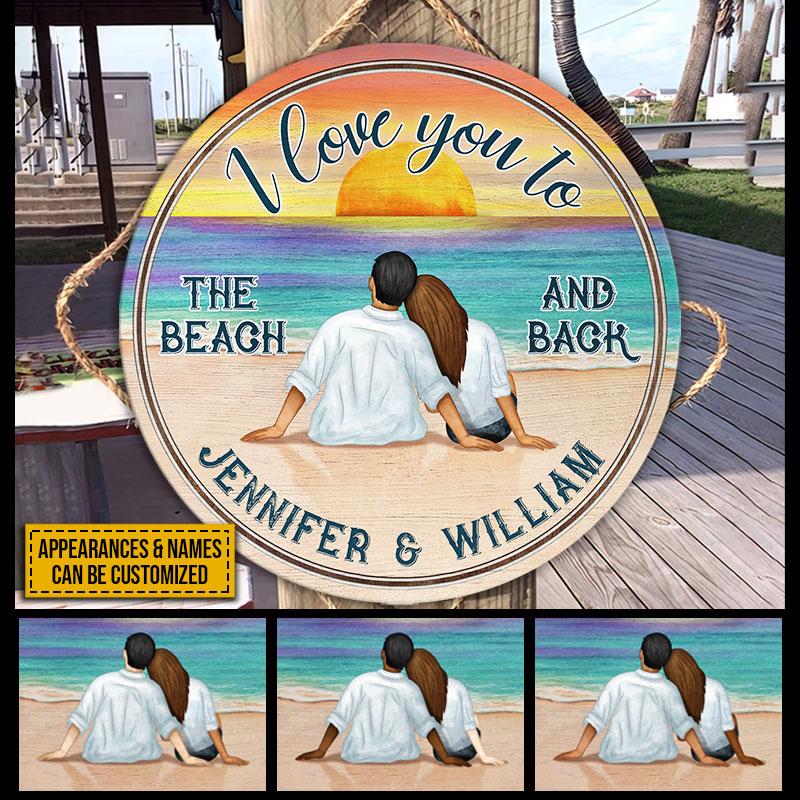 Beach Young Couple Sunset Custom Wood Circle Sign
