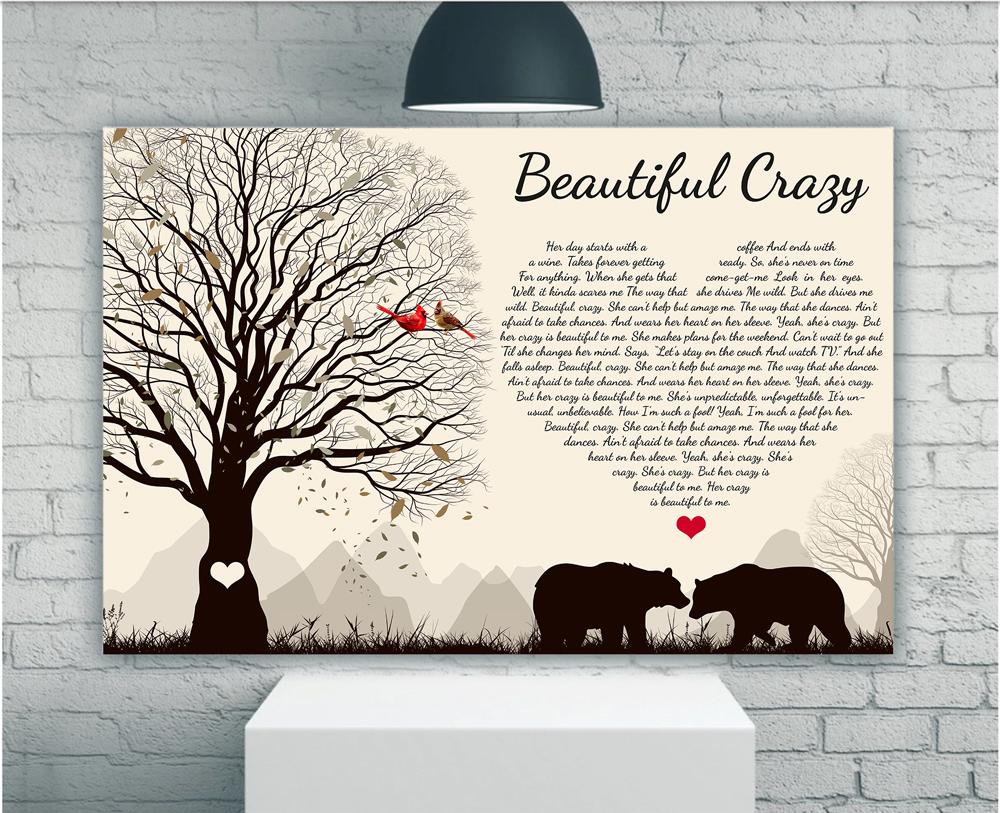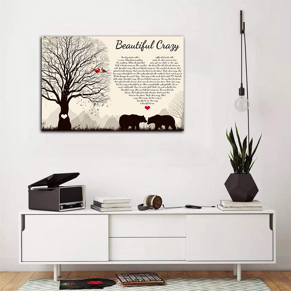 Beautiful Crazy Song Lyric, Valentine’s Day Gifts For Her, Gifts For Him Couple Bear Canvas
