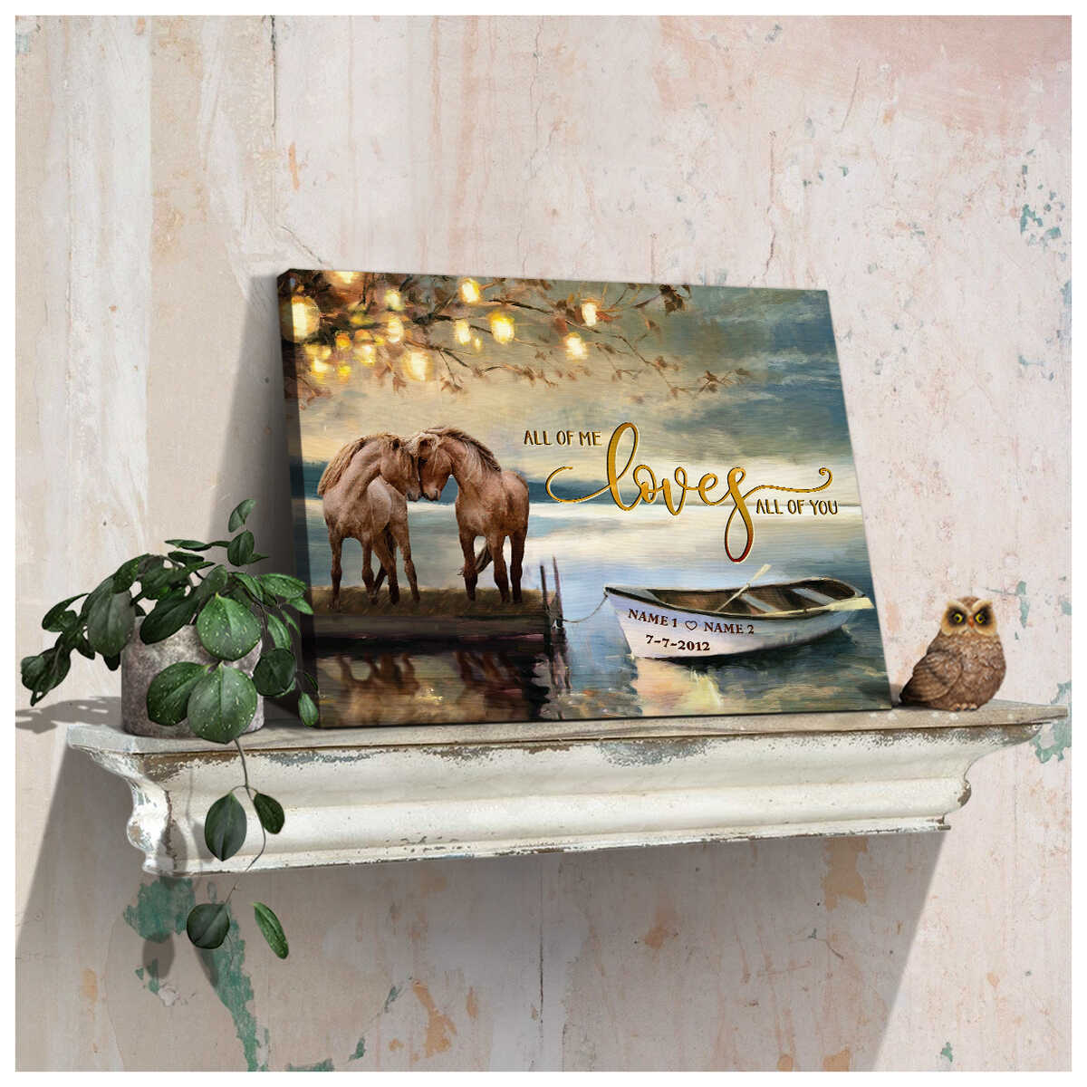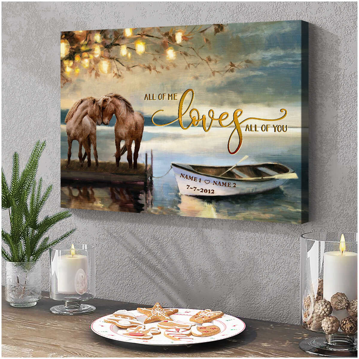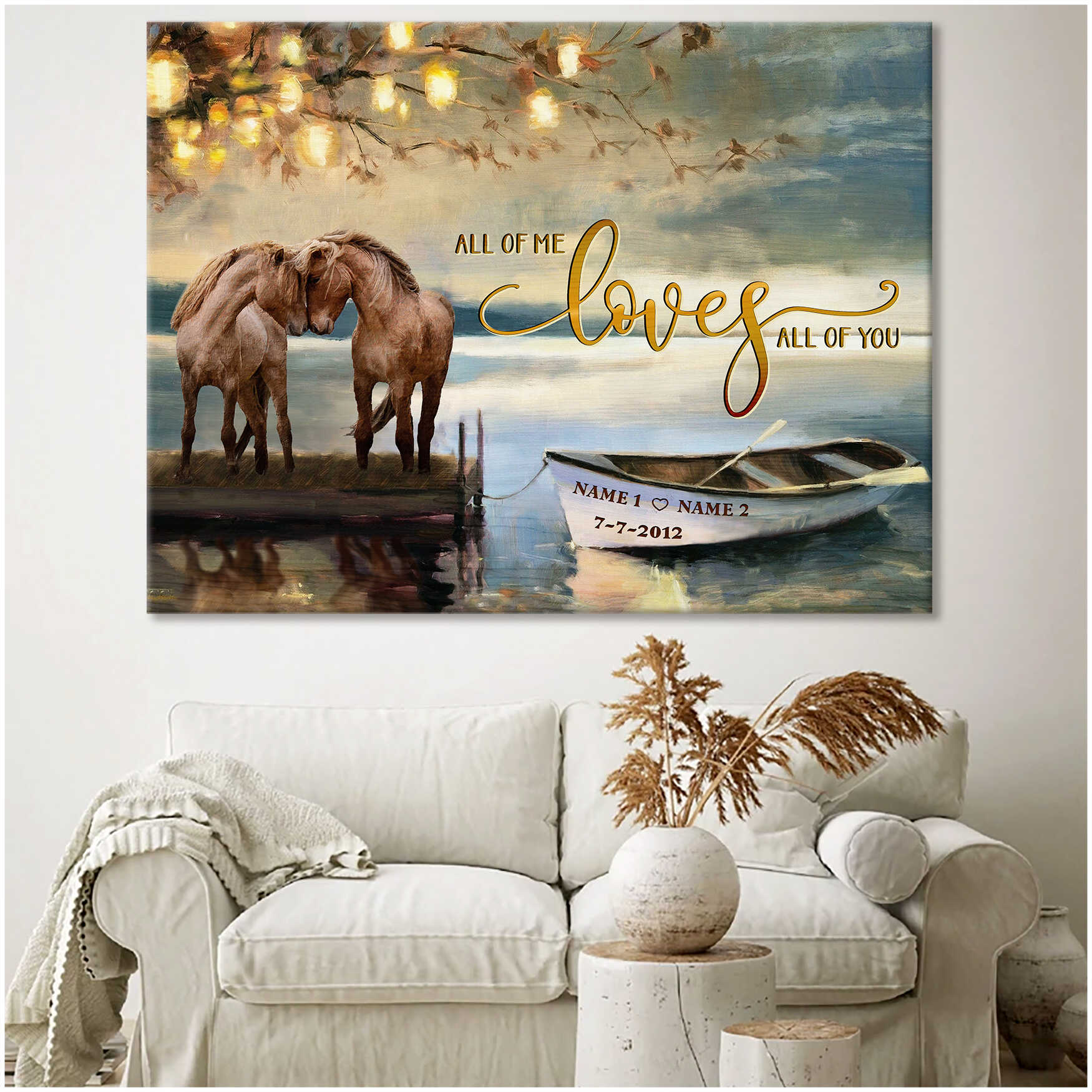 Beautiful Horse Couple By The Lake All Of Me Loves All Of You Custom Name And Date Personalized Canvas Prints Wall Art Decor