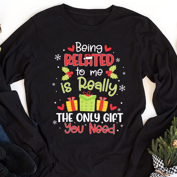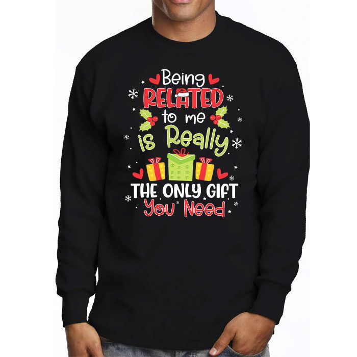 Being Related To Me Funny Christmas Family Xmas Pajamas Gift Longsleeve Tee