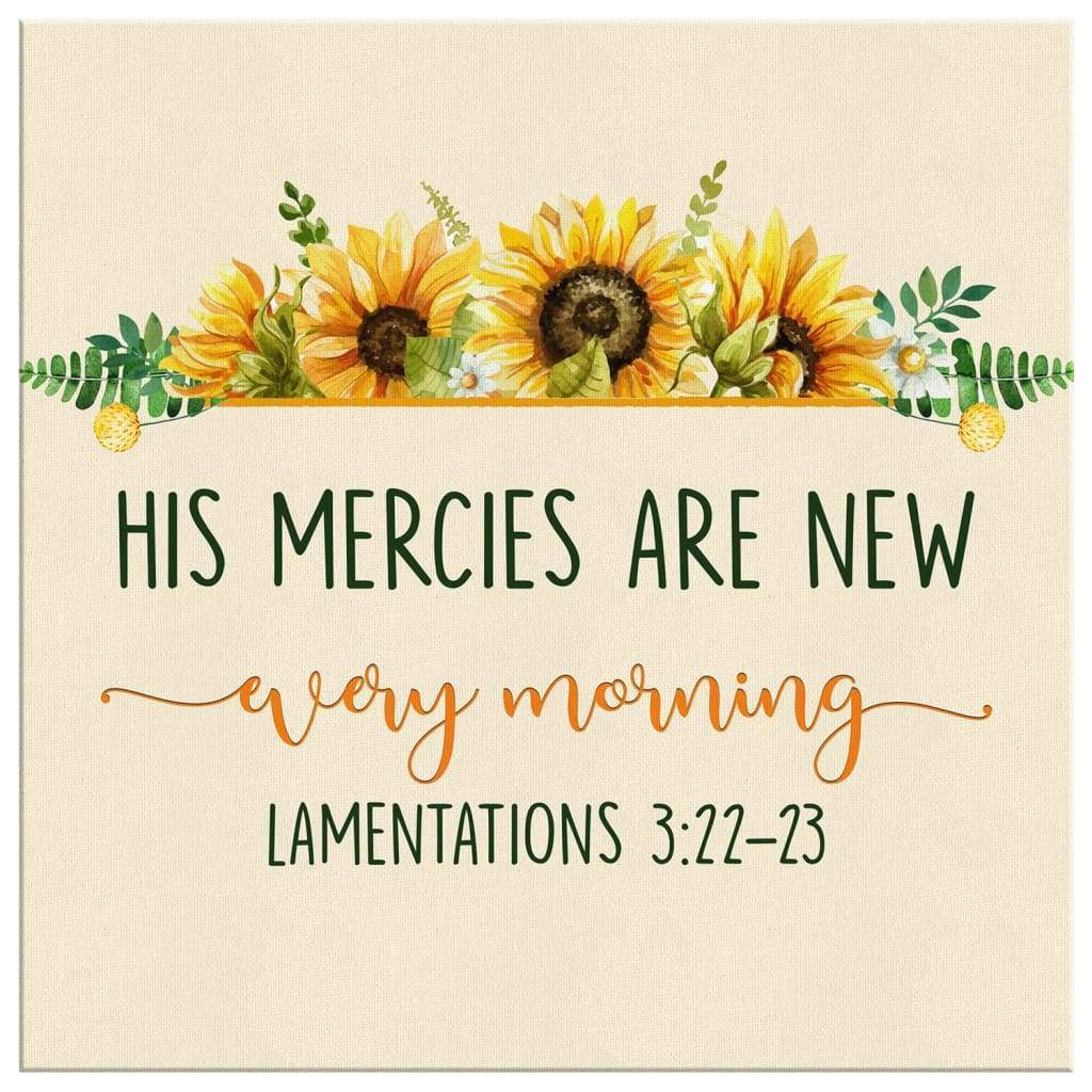 Bible Verse Wall Art: His Mercies Are New Every Morning Lam 3:22-23 Canvas Print