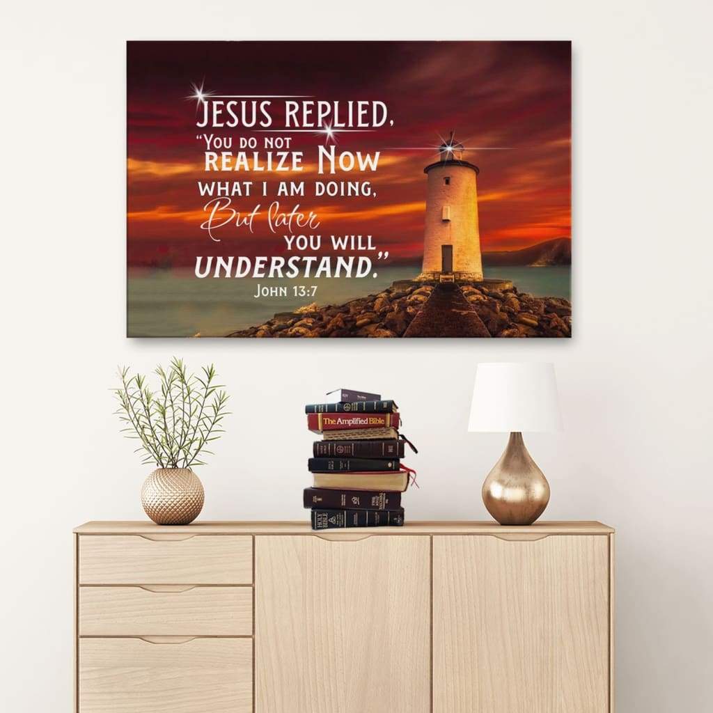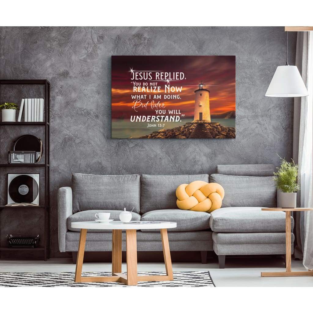 Bible Verse Wall Art: John 13:7 Jesus Replied You Do Not Realize Now Canvas Print