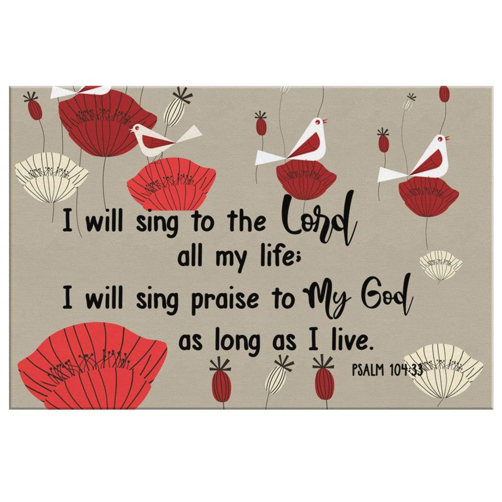 Bible Verse Wall Art: Psalm 104:33 I Will Sing To The Lord All My Life Canvas Print
