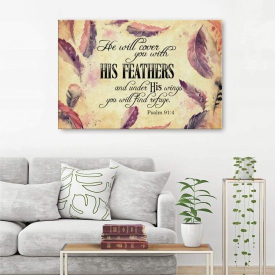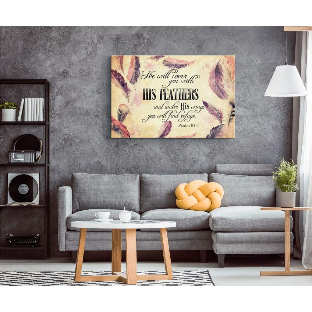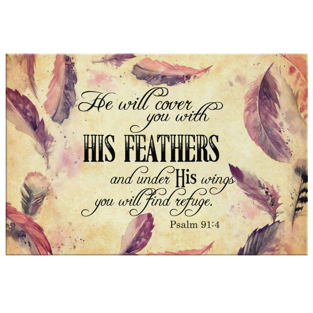 Bible Verse Wall Art: Psalm 91:4 Niv He Will Cover You With His Feathers Canvas Print