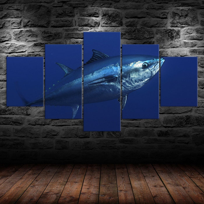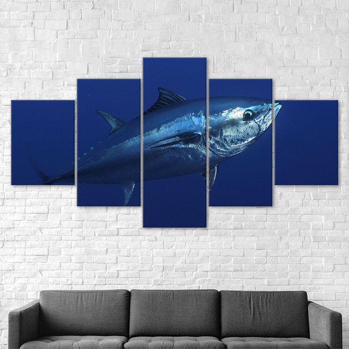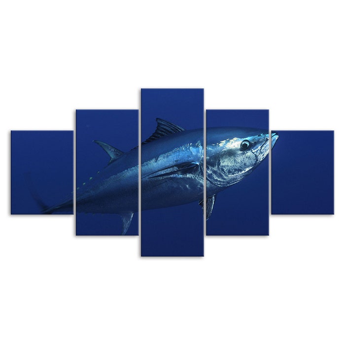 Big Bluefin Tuna Fish Atlantic 5 Piece Five Panel Wall Canvas Print Modern Art Poster Wall Art Decor