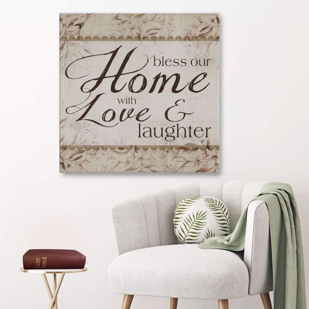 Bless Our Home With Love And Laughter Wall Art Canvas – Christian Wall Art