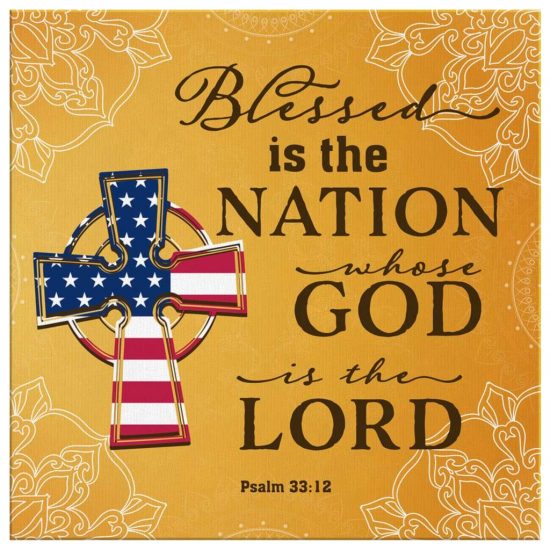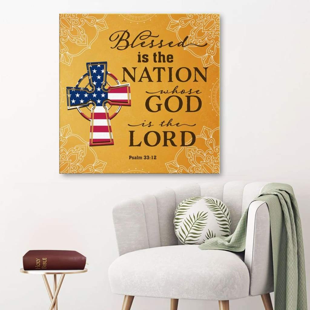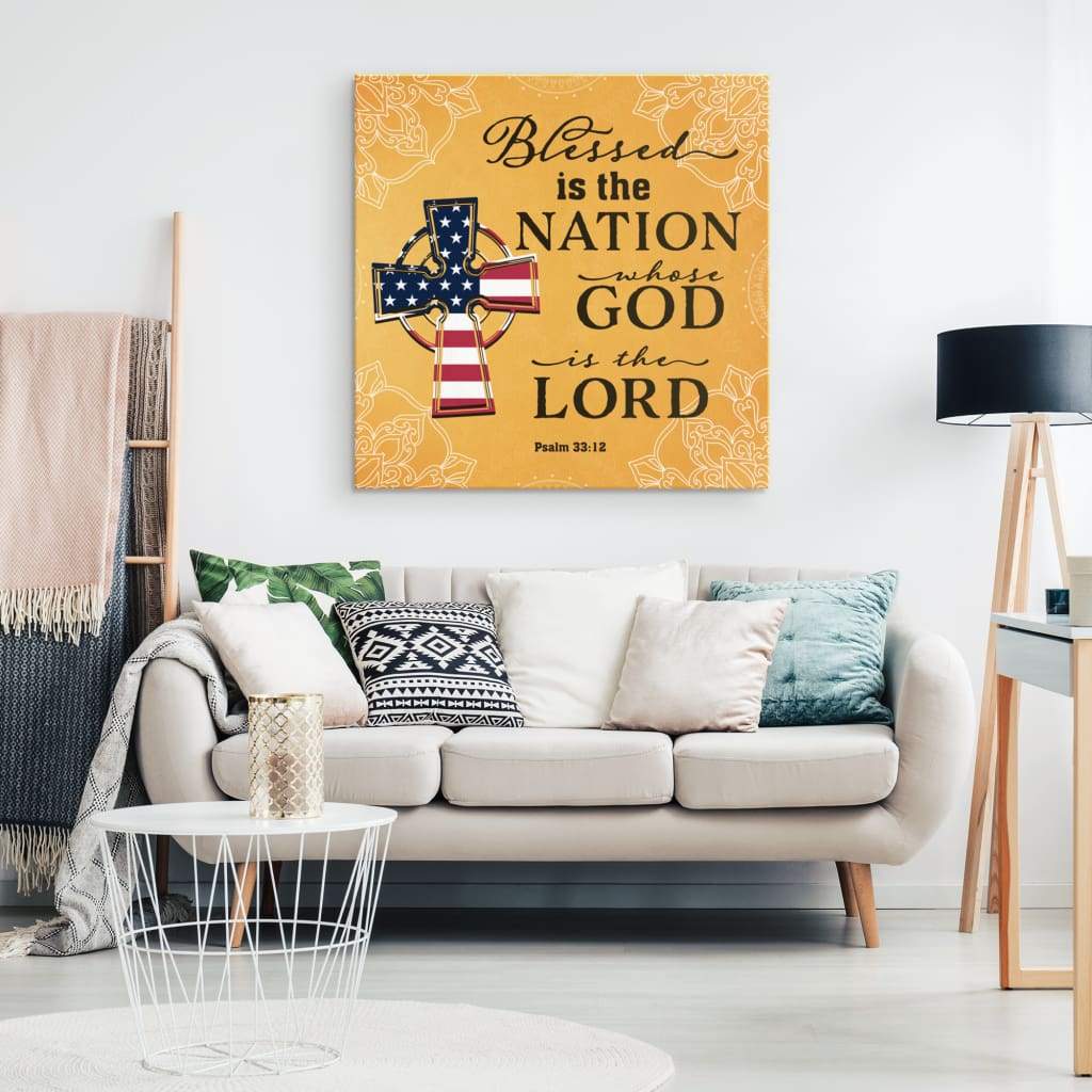Blessed Is The Nation Whose God Is The Lord Psalm 33:12 Christian Wall Art Canvas