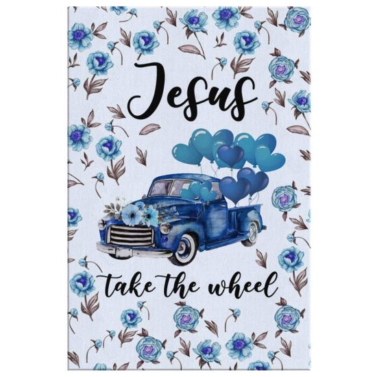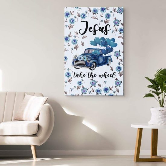 ( Blue) Jesus Take The Wheel Christian Canvas Wall Art