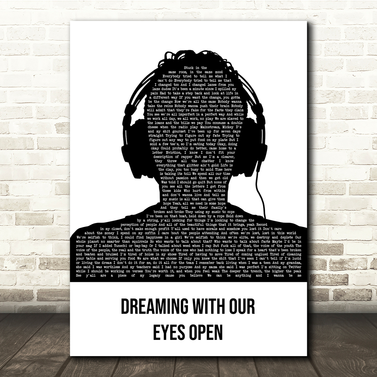 Breaking Benjamin Breath Black & White Man Headphones Song Lyric Wall Art Print