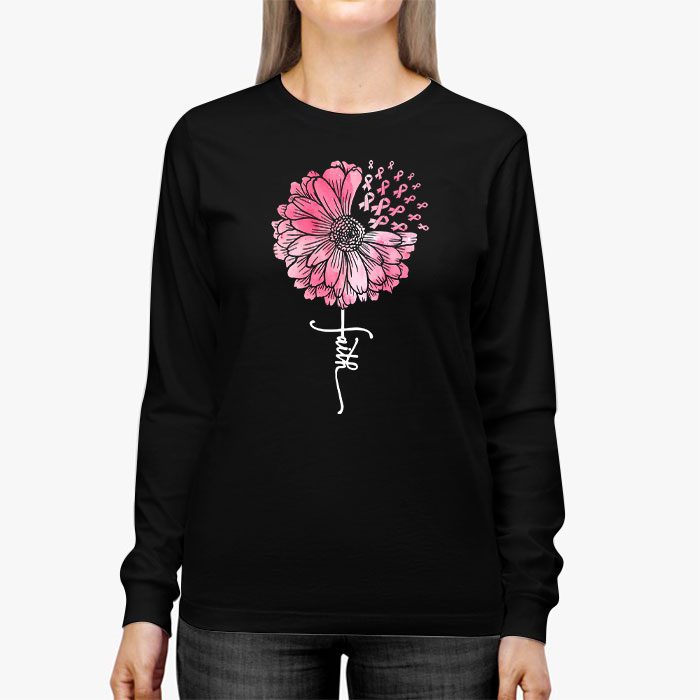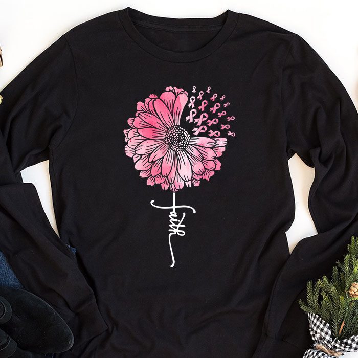 Breast Cancer Awareness Sunflower Pink Ribbon Faith Special Longsleeve Tee