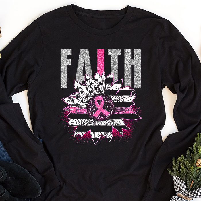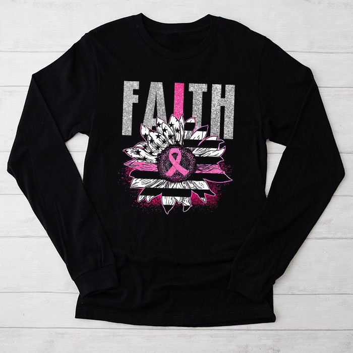 Breast Cancer Awareness Sunflower Pink Ribbon Faith Special Longsleeve Tee