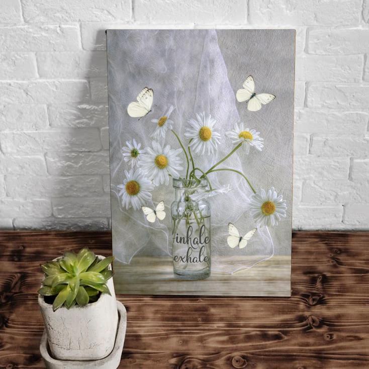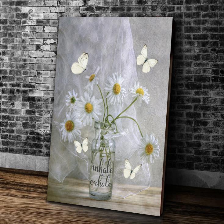 Butterfly Canvas Wall Art – Motivational Quotes Canvas – Butterfly Inhale Exhale Daisy Canvas