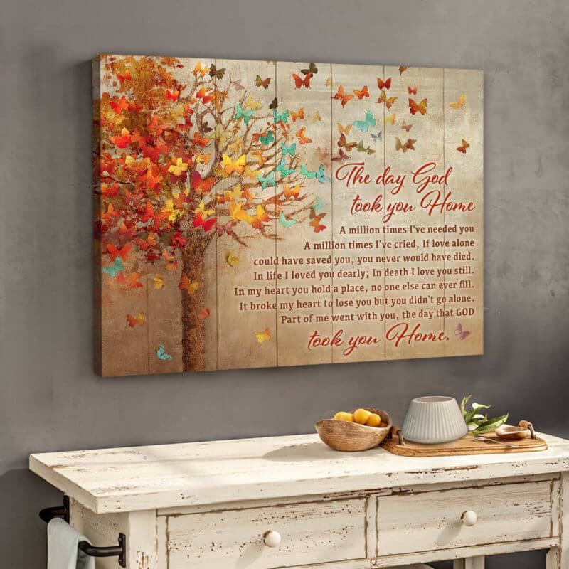 Butterfly Canvas Wall Art – Motivational Quotes Canvas – The Day God Took You Home Butterfly Canvas Wall Art Decor