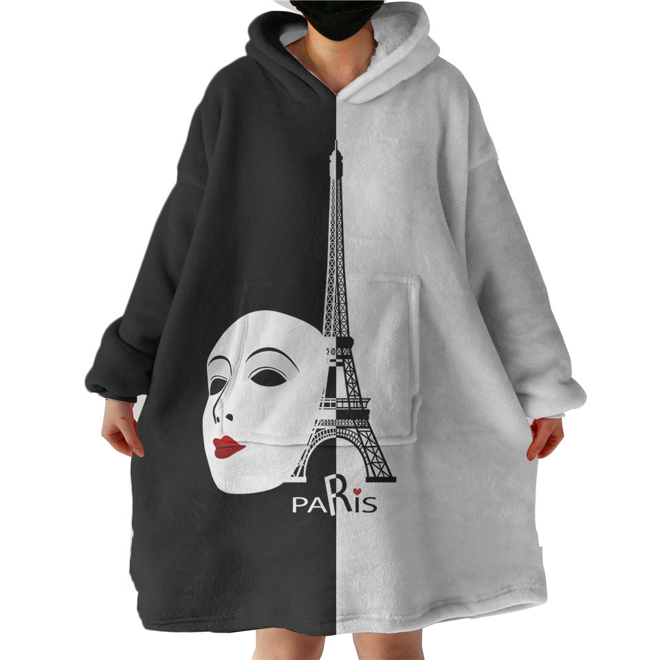 B&W Paris Eiffel Tower Face Mask Red Lips Hoodie Wearable Blanket WB0146
